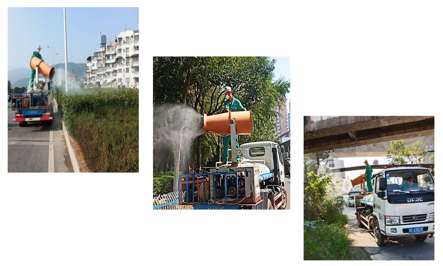 看,大型噴霧車正在對(duì)公路兩邊密集的綠化帶等蚊子聚集區(qū)域進(jìn)行高強(qiáng)度的噴霧消殺,范圍大,強(qiáng)度大,藥液量足,持續(xù)噴藥時(shí)間長(zhǎng)讓蚊子無(wú)處遁形。