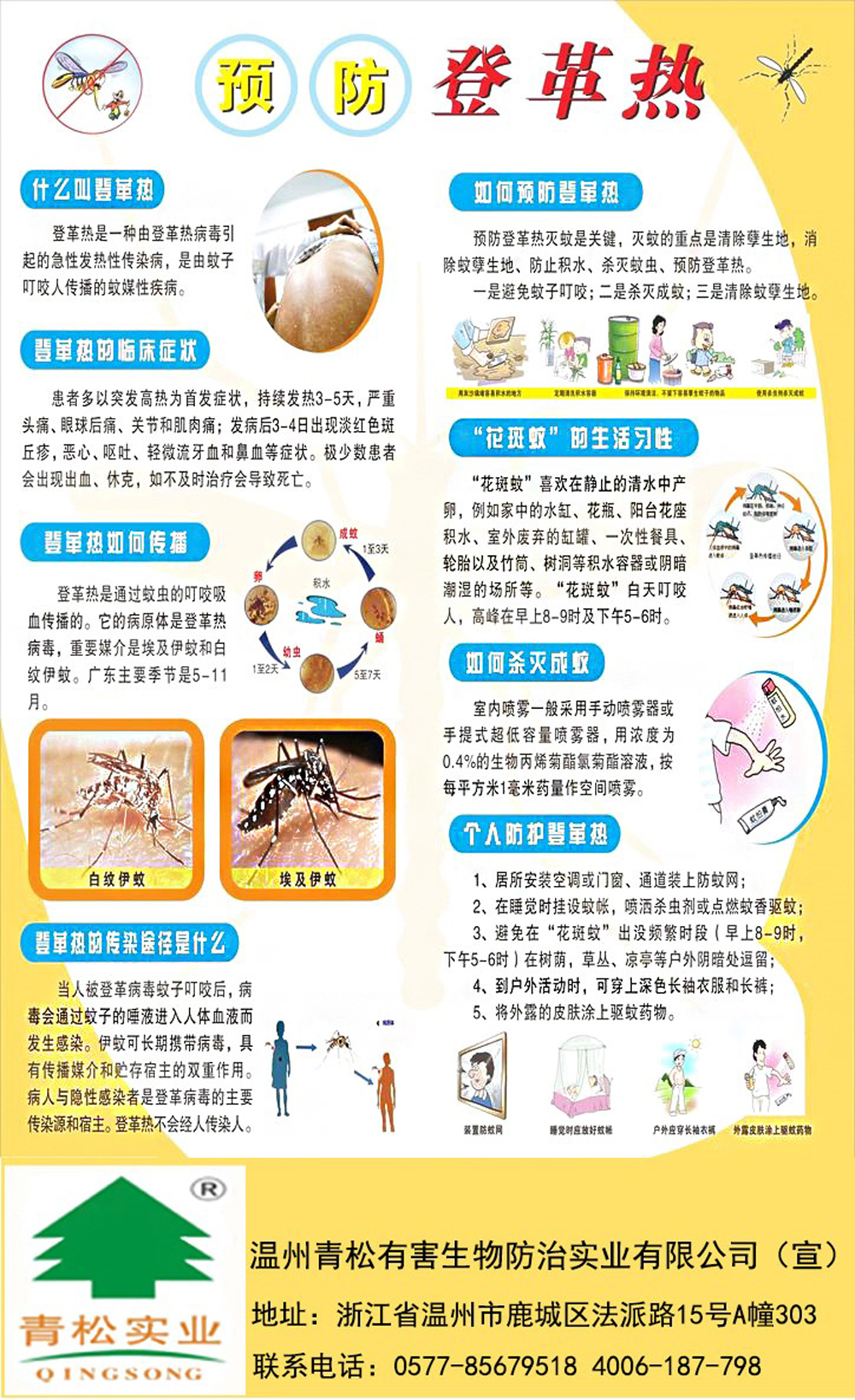 蚊蟲滋生傳播疾病,害居民身體健康。為進(jìn)一步做好登革熱防控工作加強(qiáng)對(duì)登革熱疫情的防控工作,做好防蚊滅蚊和宣傳,防止疾病傳播,將登革熱扼殺在搖籃里,受鹿城區(qū)南郊街道的委托,溫州青松有害生物防治實(shí)業(yè)有限公司,持續(xù)一個(gè)多月開(kāi)展登革熱消殺防制及防蚊滅蚊行動(dòng)。接到委托后,青松實(shí)業(yè)上下高度重視,董事長(zhǎng)朱雪松統(tǒng)籌安排,組織領(lǐng)導(dǎo)和技術(shù)骨干制定有針對(duì)性的消殺防制方案。準(zhǔn)備高效消殺藥液和備齊各式專業(yè)消殺設(shè)備投入到這場(chǎng)預(yù)防蚊媒傳染的登革熱消殺防治的戰(zhàn)斗中。