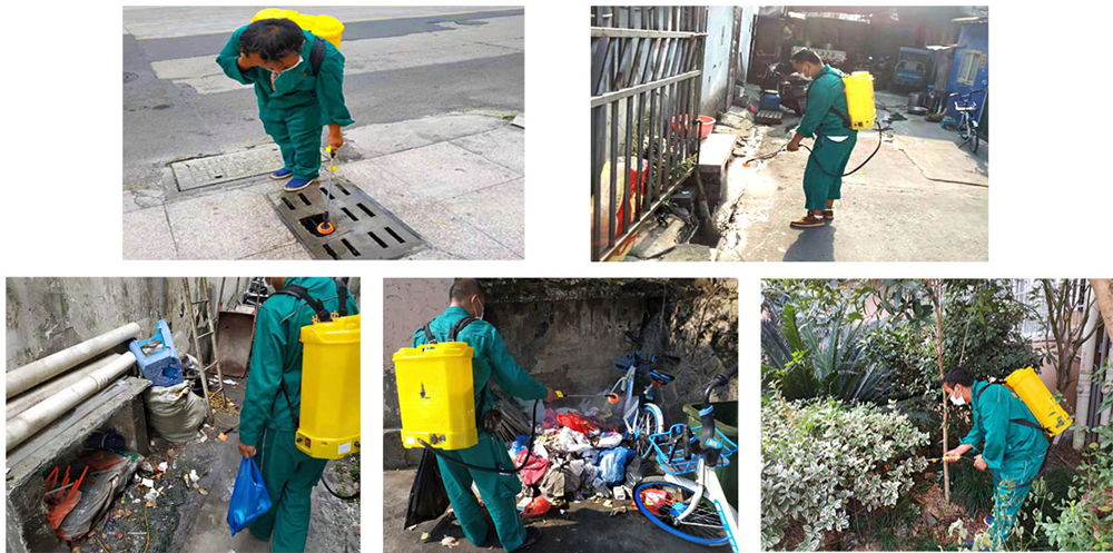小區(qū)域采用背負(fù)式蓄電池噴霧器進(jìn)行點(diǎn)對(duì)點(diǎn)的精確消殺,不漏掉任何蚊蟲滋生區(qū)域,全范圍,全覆蓋。